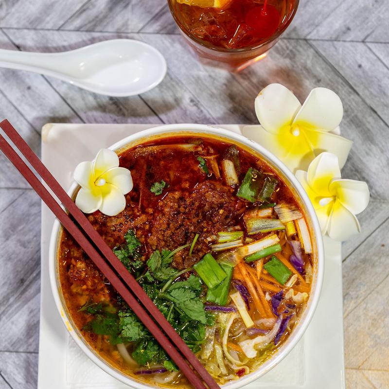 Hearty, authentic Cambodian soup. Your choice of tofu, chicken, pork, or beef with vegetables, thickened with roasted rice powder
