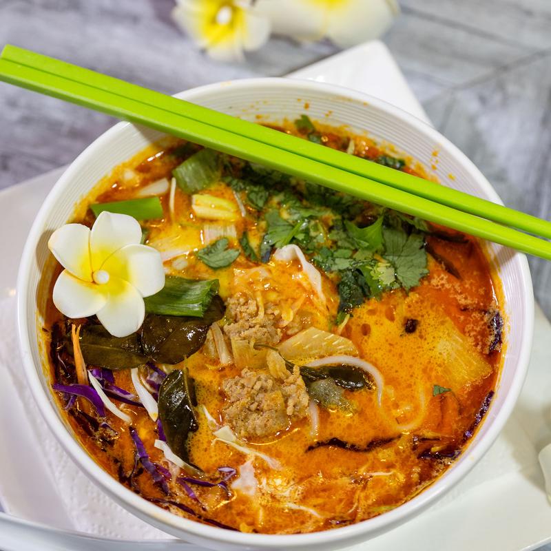 Cambodian favorite! Full of natural flavor consisting of basil, kefir leaves, galanga, and lemongrass. Your choice of tofu, chicken, pork, or beef